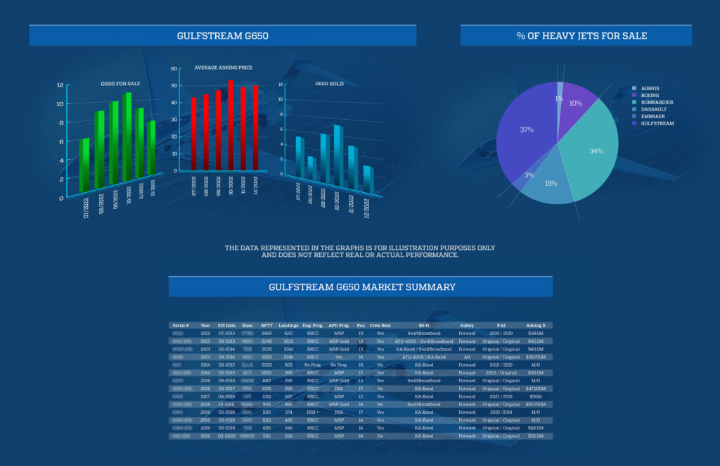 HMS Aviation’s internal state-of-the-art computer tracking technology, sophisticated research and unparalleled business aviation intelligence is the industry benchmark. HMS Aviation functions as a strict advocate for our clients, capable of identifying all aircraft for sale, market trends, all options for management, and all options for ownership structure A degree of expertise that can only be gained through years of daily market research and hundreds of business jet transactions.
